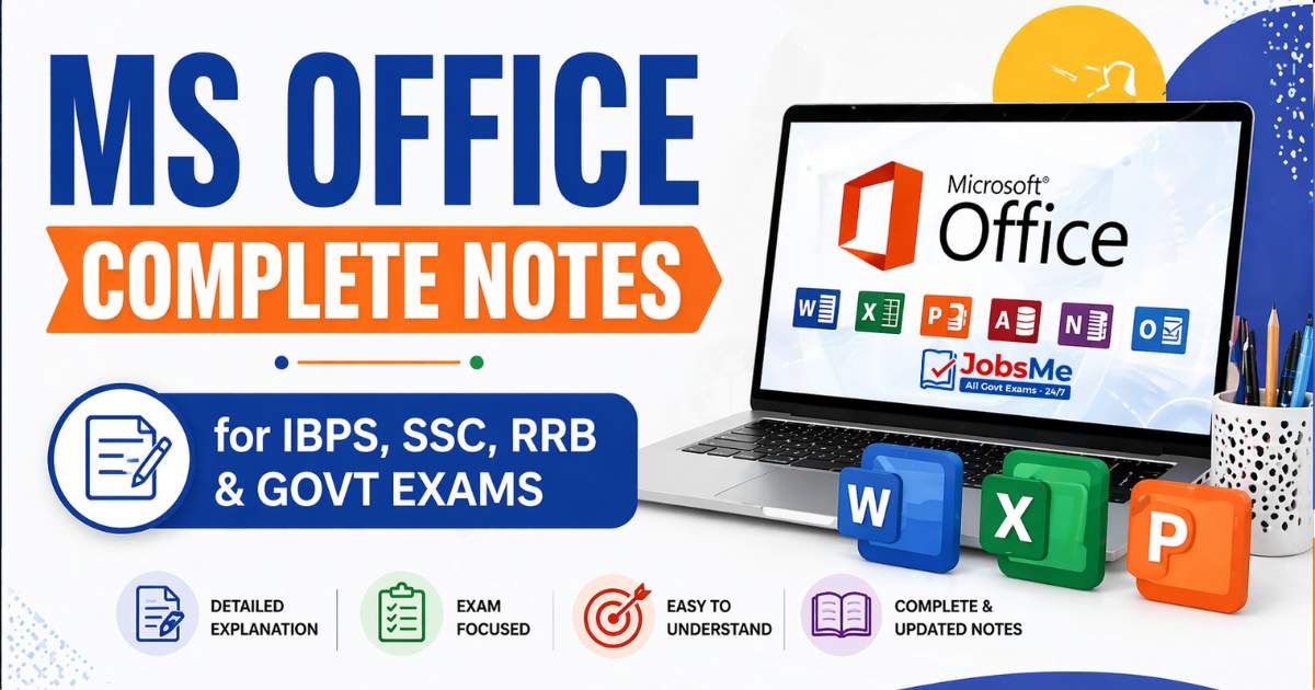Microsoft Office is one of the most directly practical and exam-relevant chapters in Computer Awareness for IBPS, SSC CGL, RRB NTPC, LIC AAO, and all government job exams. This post covers everything — MS Word (components, features, shortcuts), MS Excel (functions, formulas, charts, shortcuts), MS PowerPoint (views, features, shortcuts), MS Access (components, data types, keys), MS Outlook, and Google Workspace — with memory tricks, one-liners, and 10 exam-focused FAQs.